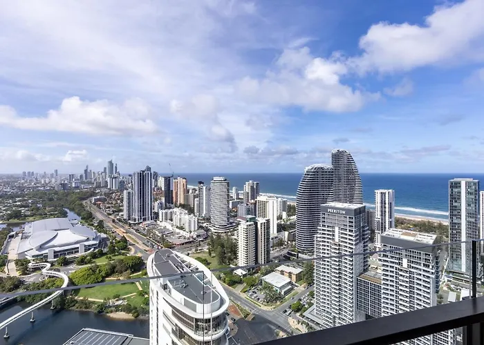 Geniet van een ingerichte kitchenette in Cityscape Ocean View Deluxe 2Bedroom Apartment met een waterkoker, een koelkast en keukengerei voor uw gemak. Het treinstation Coomera bevindt zich binnen 29 km afstand van deze 1-slaapkameraccommodatie. Bovendien kunnen gasten gebruik maken van een wellnesscentrum om hen te helpen lichamelijk actief te blijven. Voor een ontspannen verblijf wordt er een zwembad aangeboden.